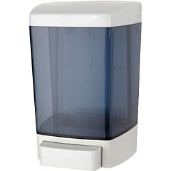 - Translucent cover allows view of soap supply.